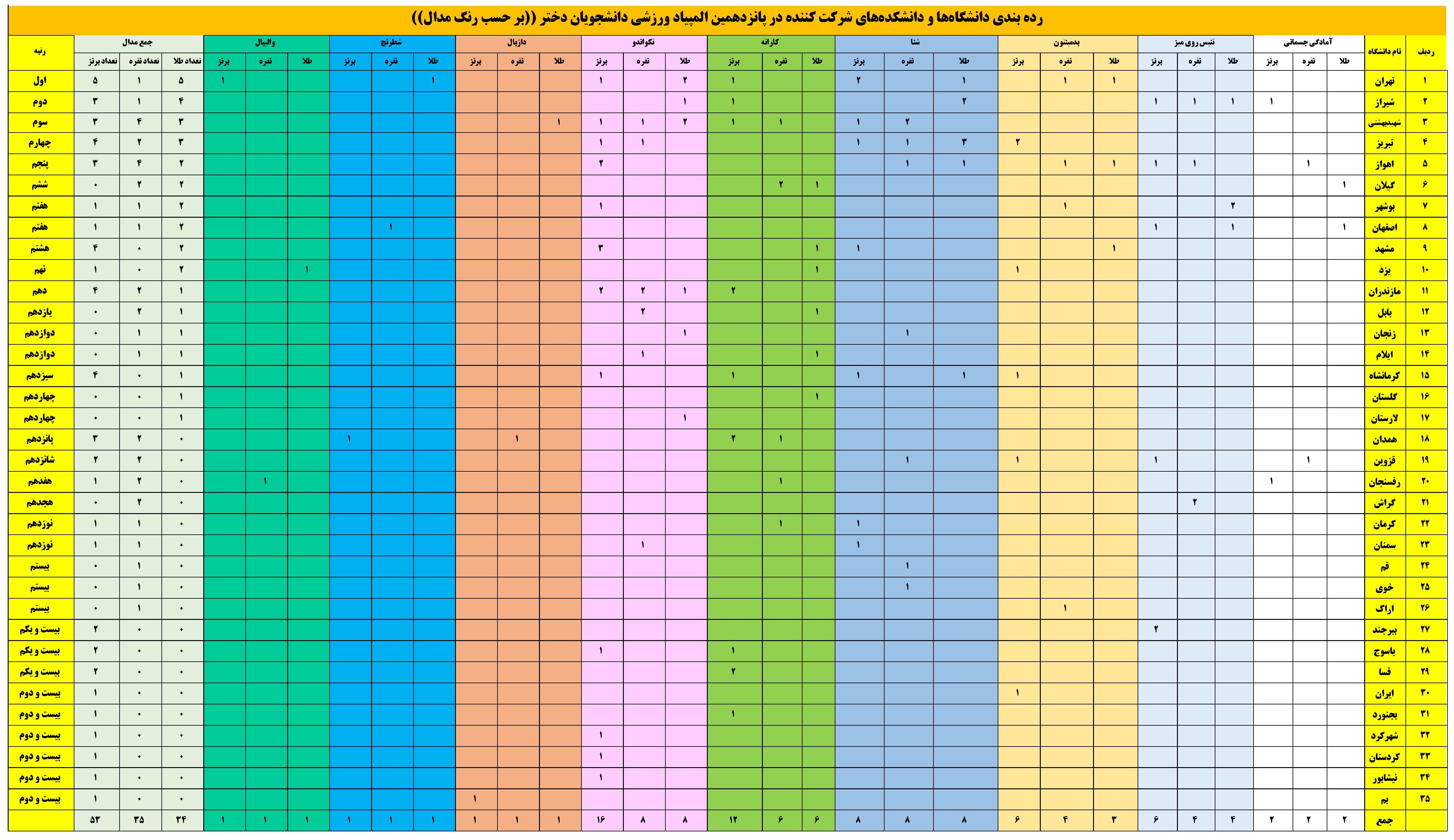 دکتر «محسن داودی» با بیان استقبال گسترده دانشگاه های علوم پزشکی کشور از این رویداد بزرگ ورزشی، افزود: در مجموع 54 دانشگاه و بیش از 1200 دانشجوی دختر در این مسابقات شرکت کردند و کاروان ورزشی دانشگاه علوم پزشکی شیراز با کسب 7 مدال رنگارنگ موفق به کسب مقام نایب قهرمانی این المپیاد ورزشی شد.