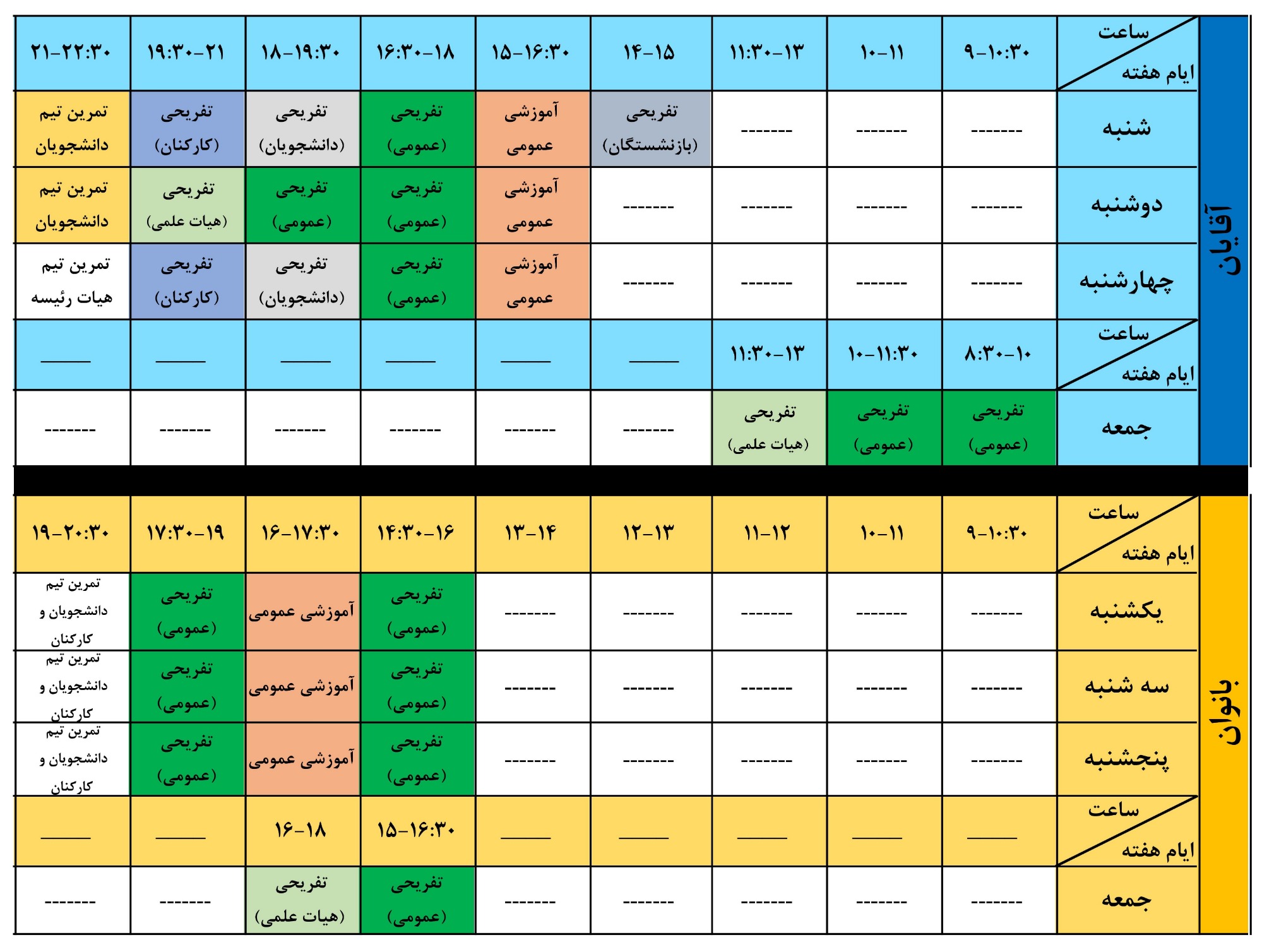 برنامه استخر سرپوشیده مجموعه ورزشی ولایت شیراز پاییز 1404